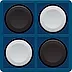 Your goal is to end up with more stones turned face up with your color when the board is filled up. You turn opponent‘s stones by placing your own next to them. The stone you place down has to connect a line between your stones that already are on the playing field. All the opponent‘s stones on that line are turned over. If somebody can‘t put a stone down, they are forced to pass the round until they can.